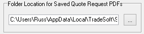 Choose the folder that ShopPAK should write generated PDFs to when emailing a quote request to one or more vendors.