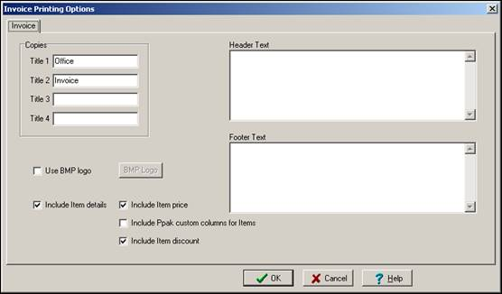 from the speed bar. This displays the “Invoice Printing Options” dialog box shown on the next page.