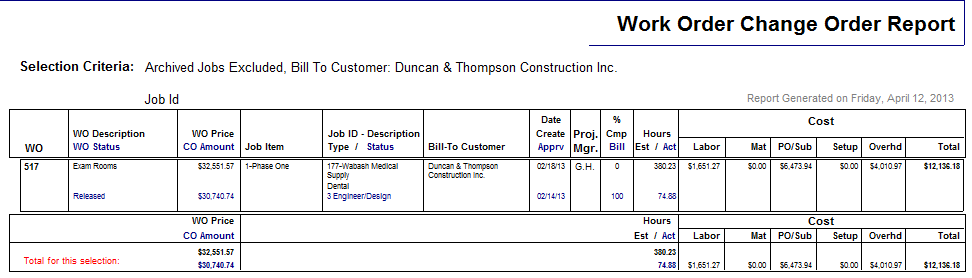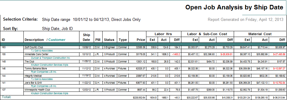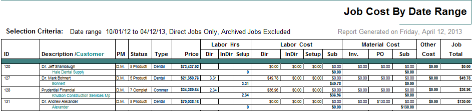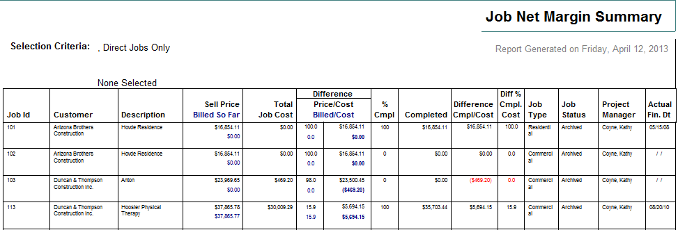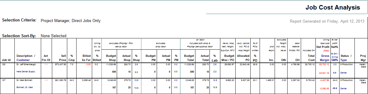 Job Cost Analysis