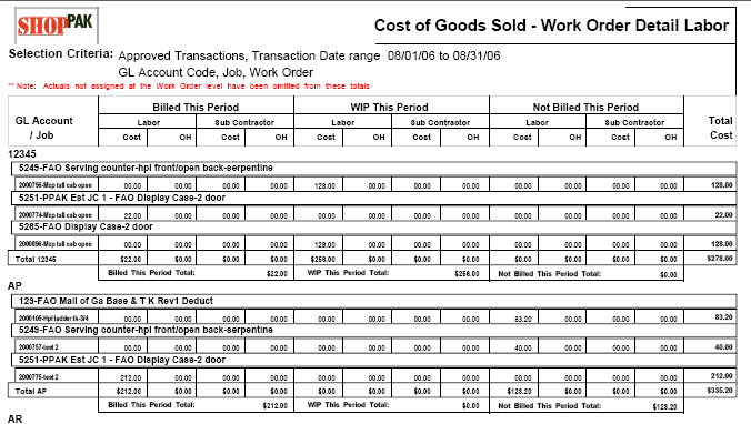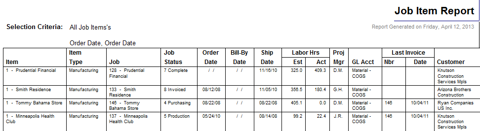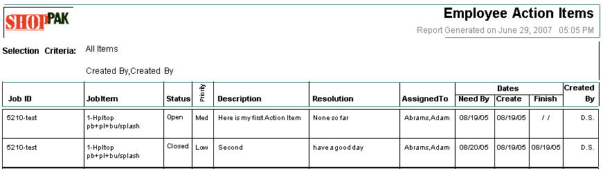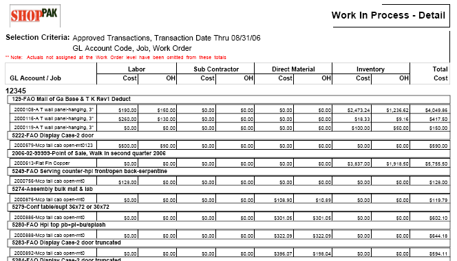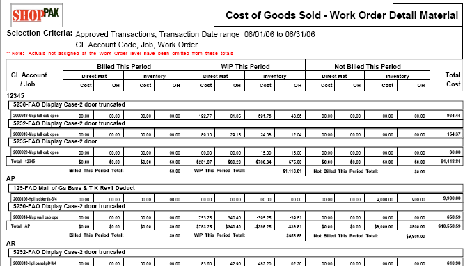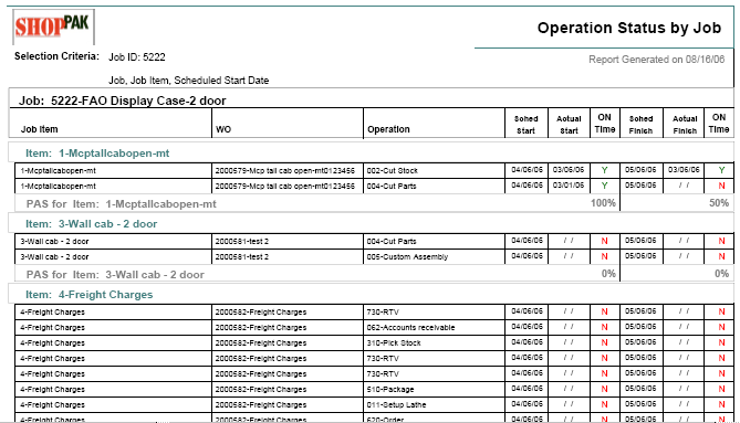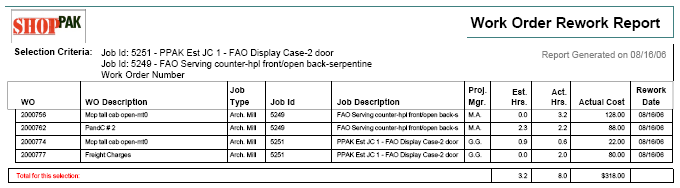 ShopPAK produces a number of job cost and tracking reports. These reports alert you to potential problems and bottlenecks, and give you the necessary information to keep jobs on target and within budget. The jobs listed on a report depend on how broad or narrow you set your report filter criteria when generating the report.