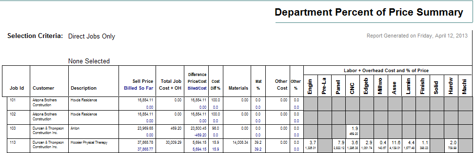 ShopPAK lets you gather job cost information at the departmental level, and if you wish, down to the operation level. Gathering department and operation data helps you pinpoint production bottlenecks, inefficiencies, and hidden costs.