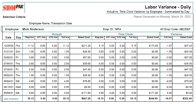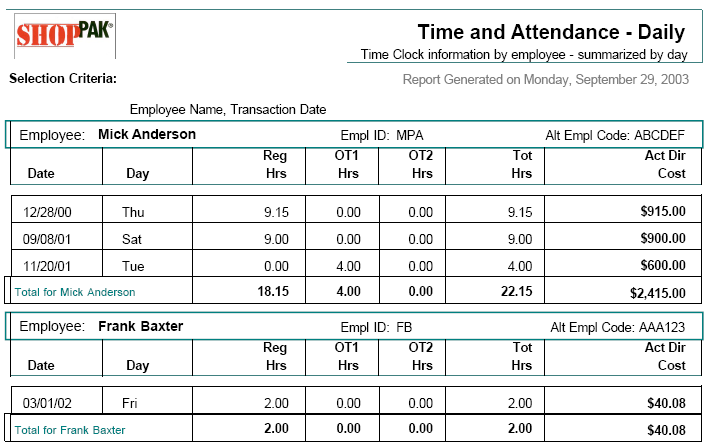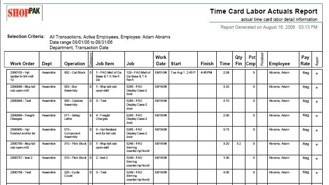 ShopPAK captures Time and Attendance and Job Cost information as employees log time against jobs. Reports allow you to gauge individual productivity, spot trends, and capture payroll information.
