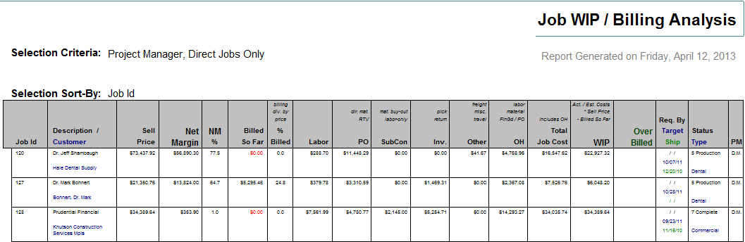 Job WIP / Billing Analysis