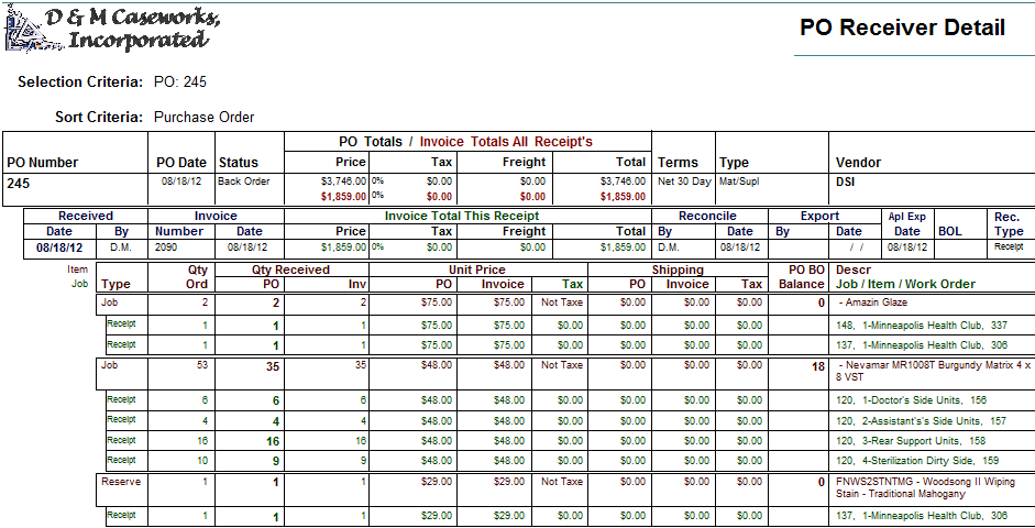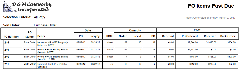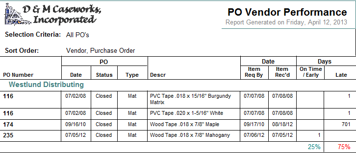 ShopPAK totally integrates Purchasing, Inventory, Job Costing, Receiving and Invoice Reconciliation. It produces a number of reports that help you manage this critical function.