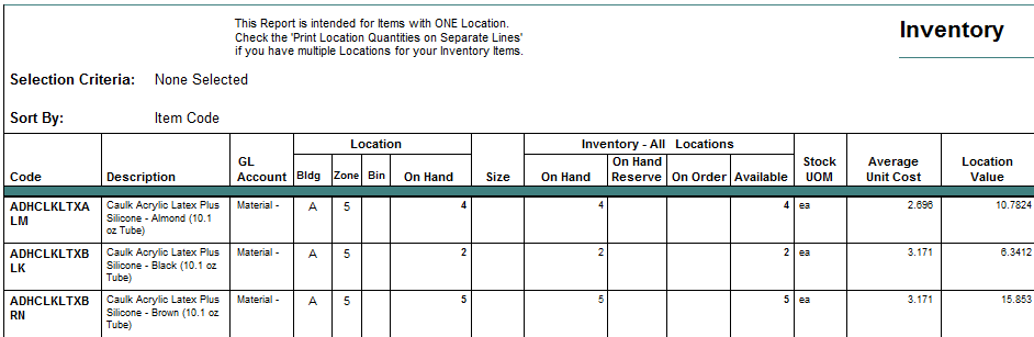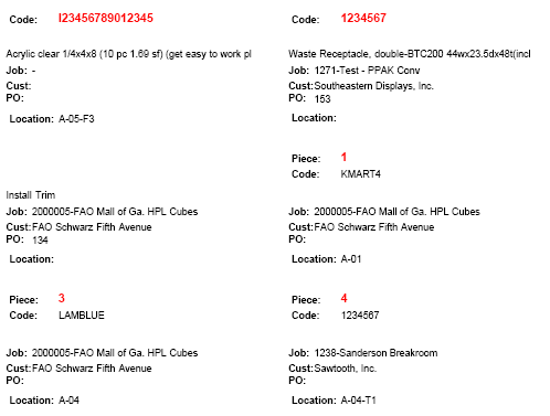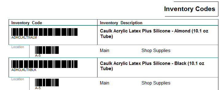 ShopPAK prints Inventory labels if you want to bar code actual materials or bin locations. Since we give users the option of scanning barcodes when doing ‘picks’ and ‘returns’ against inventory, ShopPAK gives you an easy way of generating inventory item bar coded labels. (Note, ShopPAK also produces bar coded inventory ‘pick lists’ via the Jobs tab reporting function).