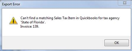 When exporting taxable Account Receivable transactions, if the interface doesn’t find a matching salse tax item, it informs you of the problem before terminating. Not all missing information can be created automatically, but the interface does a better job of identifying problems than the export file method.