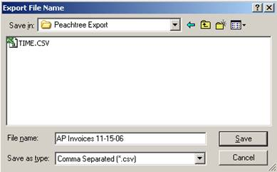 If there’s a problem, ShopPAK cancels the export operation. If the reconciled invoices have all the necessary information to be exported, ShopPAK displays an “Export File Name” dialog box so you can enter a name for the export file.