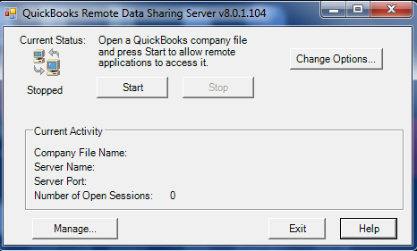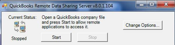 4. Launch the RDS Server by selecting Start | All Programs | QuickBooks | Remote Data Sharing Server from the Windows Start button.