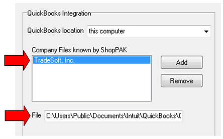 8. When focus returns to ShopPAK, you should see the QuickBooks company file name and path.