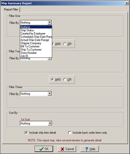 If you want to see ship item details, place a check into “Include ship item detail”. If you do this, ShopPAK makes “Include back order items only” visible. If you want to limit detail rows to only ‘backordered’ items, place a check into “Include back order items only” as well.