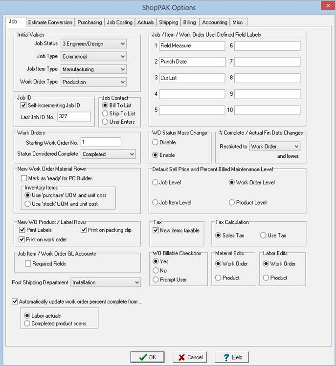 Select Define | ShopPAK Options from the menu to display the “ShopPAK Options” dialog box.