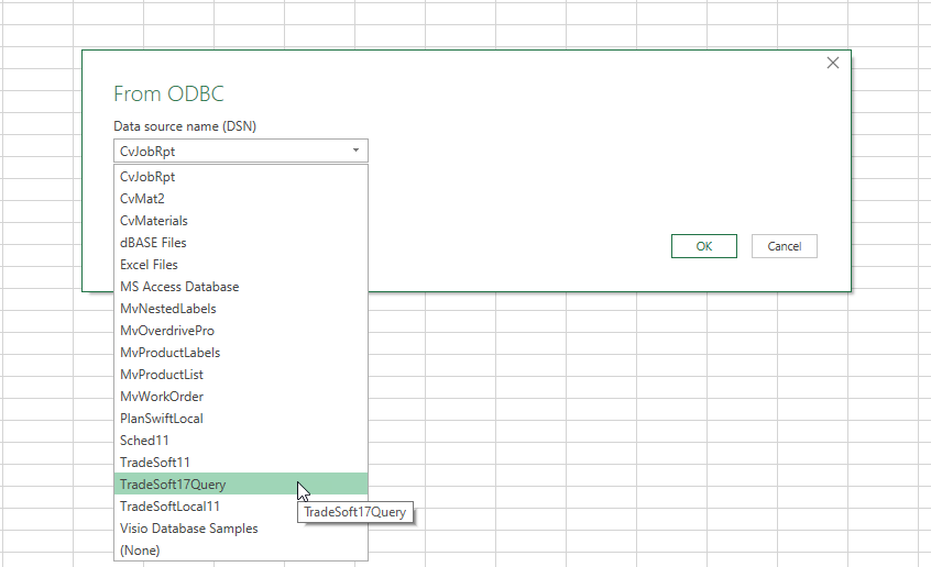 Click the drop-down and select ‘TradeSoft17Query’
