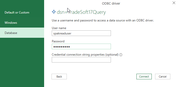 If this is the first time you have used this feature in Excel you will be asked a user name and password to connect to the database once you click OK.