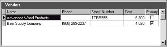 The Vendor window lets you see the vendors that supply the selected material in the Materials window.
